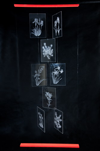 Installazione di lastre di plexiglass incise a punta secca